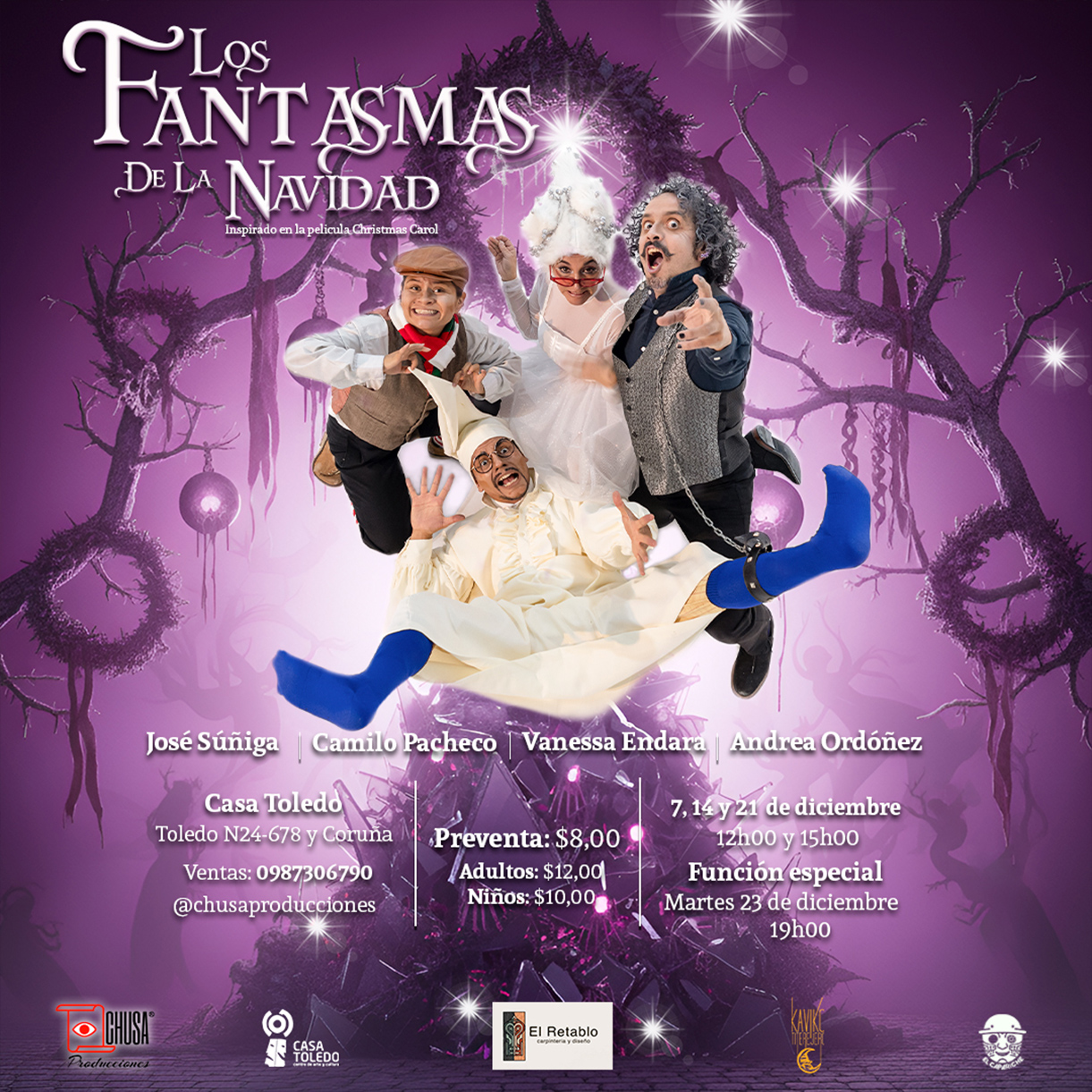 Una obra de teatro basada en la novela de Charles Dickens. Ebenezer Scrooge, un avaro hombre de negocios, banquero o chulquero con corbata, que desprecia la navidad y todo lo relacionado con la felicidad y la generosidad. En la víspera de Navidad, Scrooge es visitado por el fantasma de su antiguo socio, Jacobo Marley, quien lo advierte sobre su futuro, si no cambia su forma de vida. Una obra para toda la familia