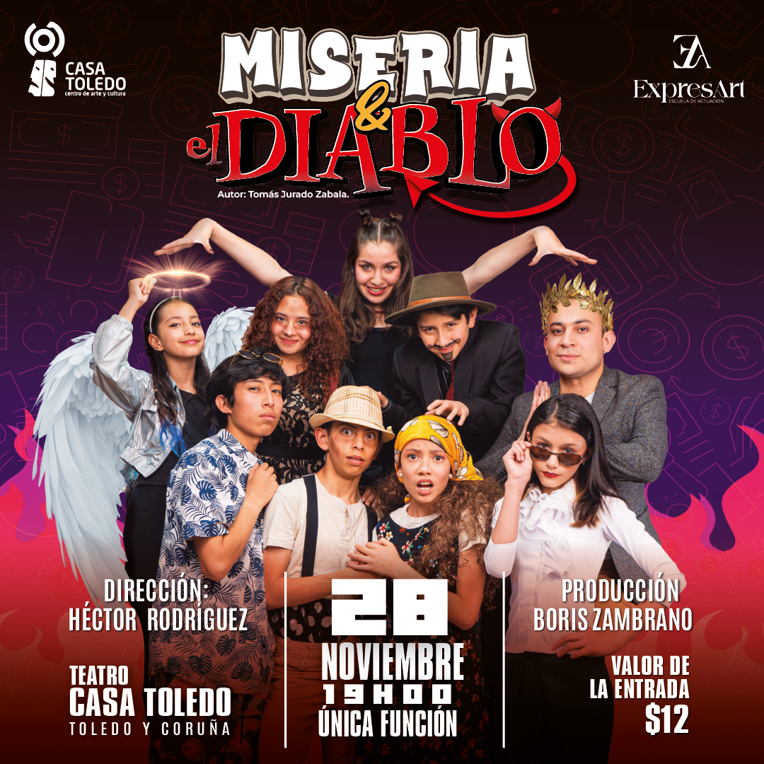 Miseria, hombre humilde y trabajador que incitado por Felicia, la mujer con quien se quiere casar, realiza un conjuro para invocar al Diablo y negociar su alma por supuesta fortuna, pero la historia se enreda cuando logra engañar a todos con brillante e inocente astucia. Una comedia de suspenso para divertirnos en familia y con amigos.